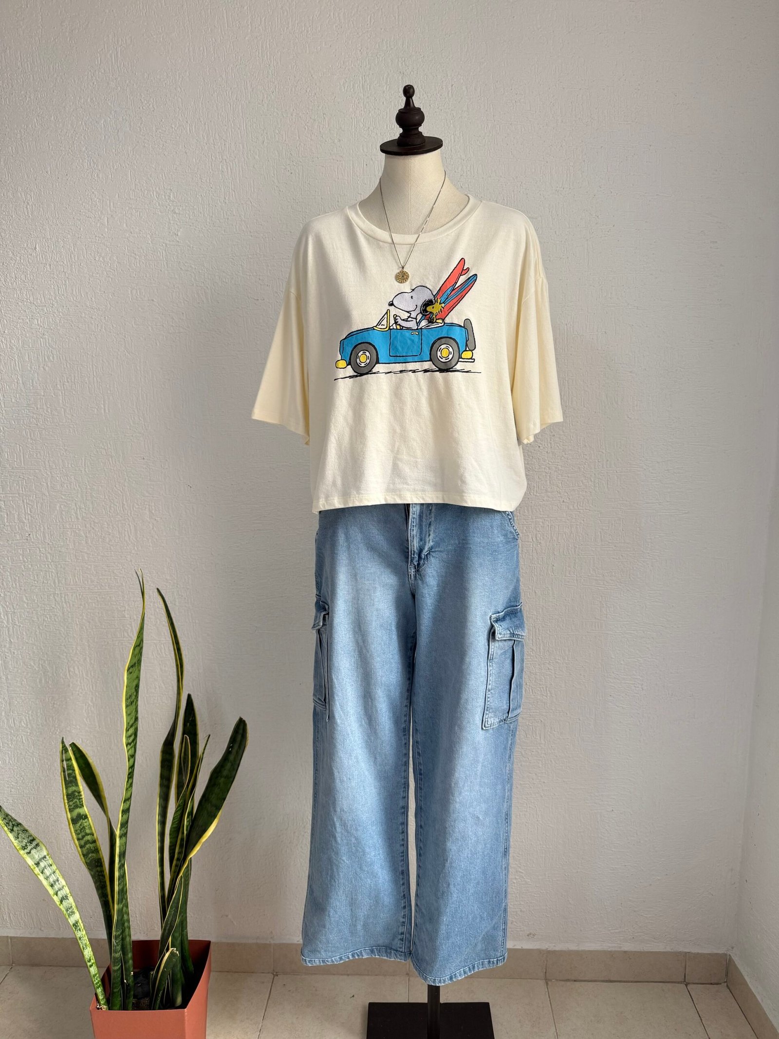 🧚🏼♀️Blusa corta color hueso con Snoopy bordado