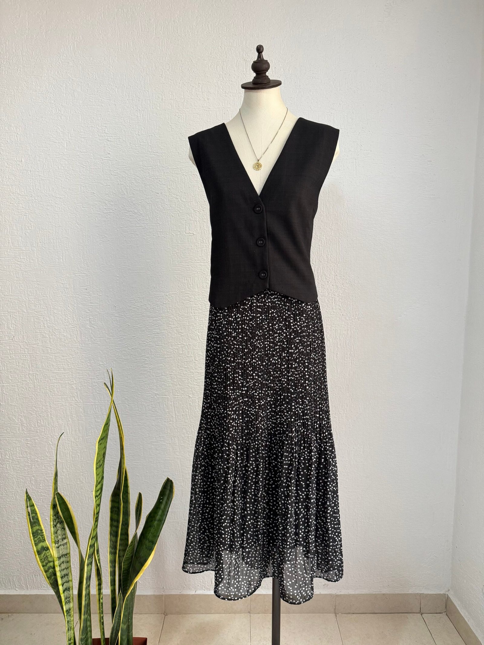🍄Maxifalda negra con lunares blancos con elástico en cintura