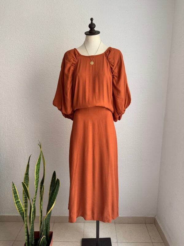 🧚🏼‍♀️ Maxivestido terracota con mangas abullonadas y elástico en cintura