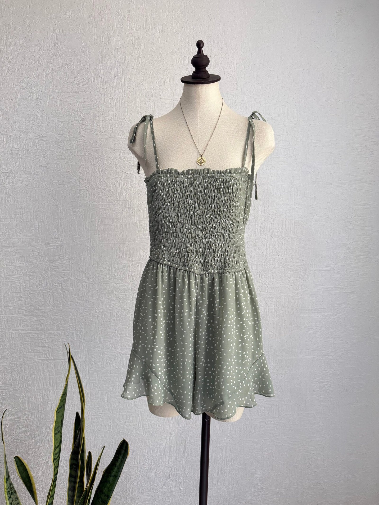 🧚🏼♀️Romper verde con polka dots blancos. Tiene elástico en pecho y tirantes ajustables