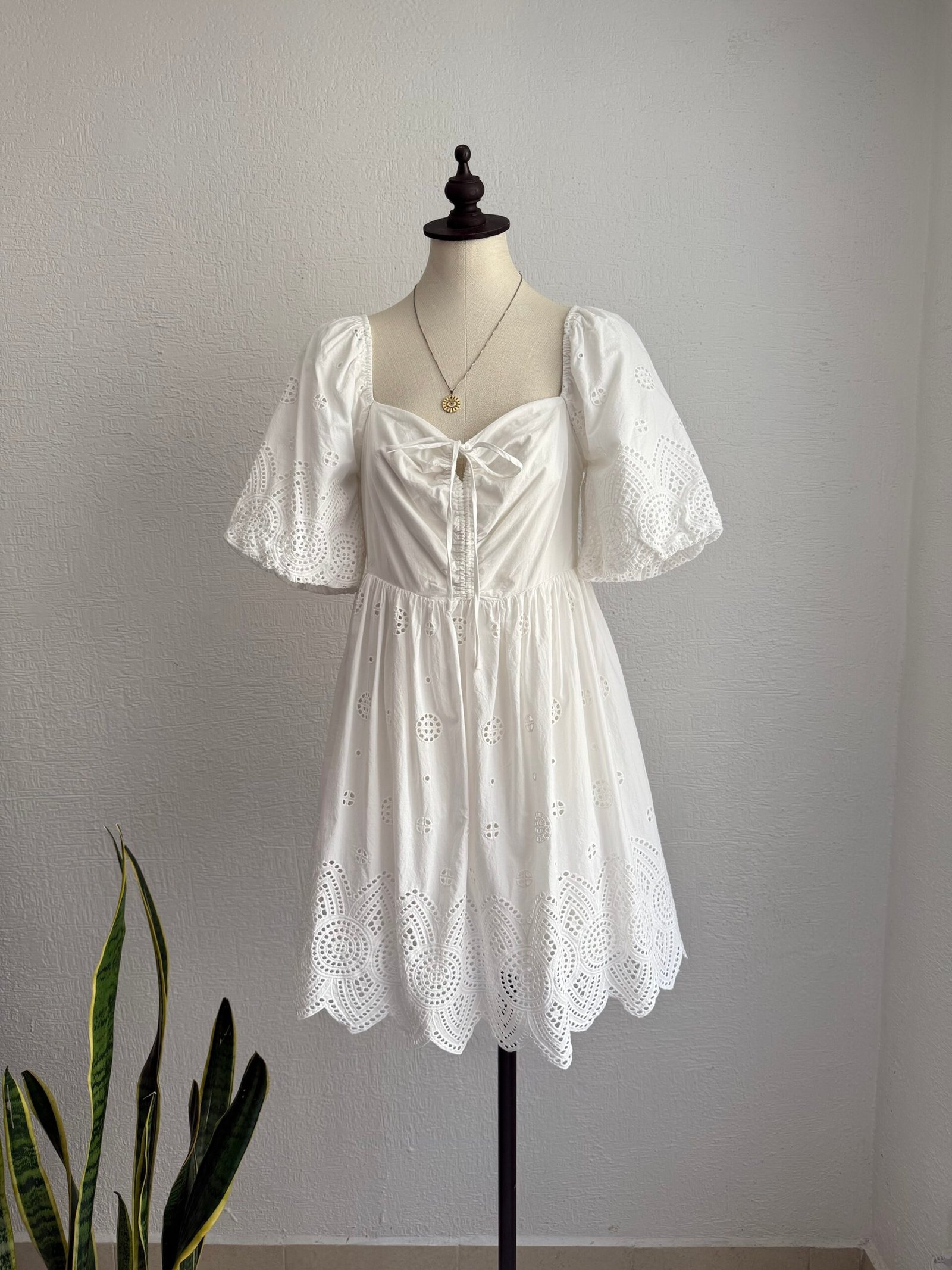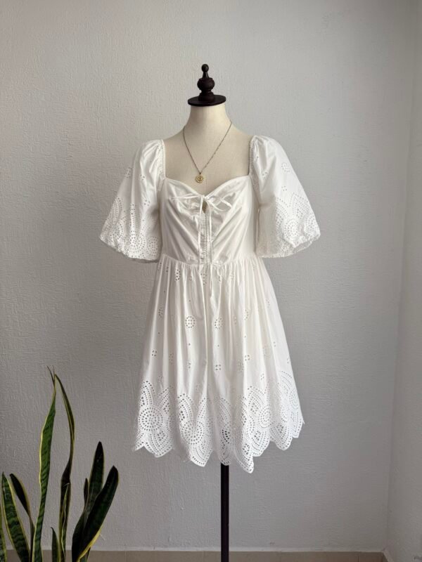 🍑 Vestido blanco con bordado suizo. Tiene forro y elástico en espalda