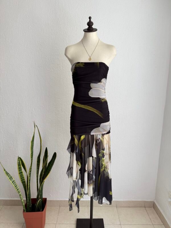 🧚🏼♀️Vestido midi de mesh con print de flores